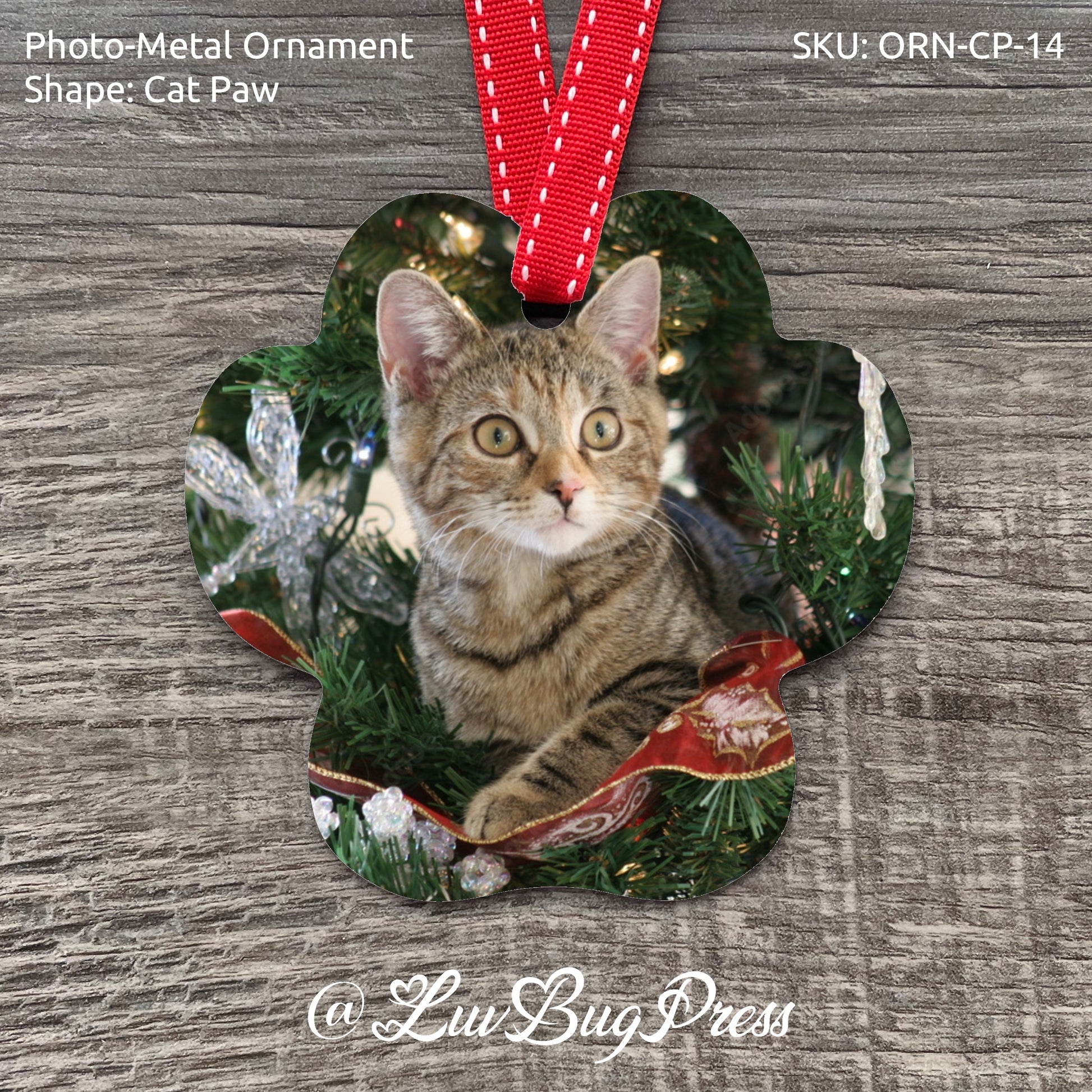 Each of our High-Definition Photo-Metal Cat Paw Ornaments beautifully illustrate your beloved images, permanently into the surface of your single or double-sided ornament.